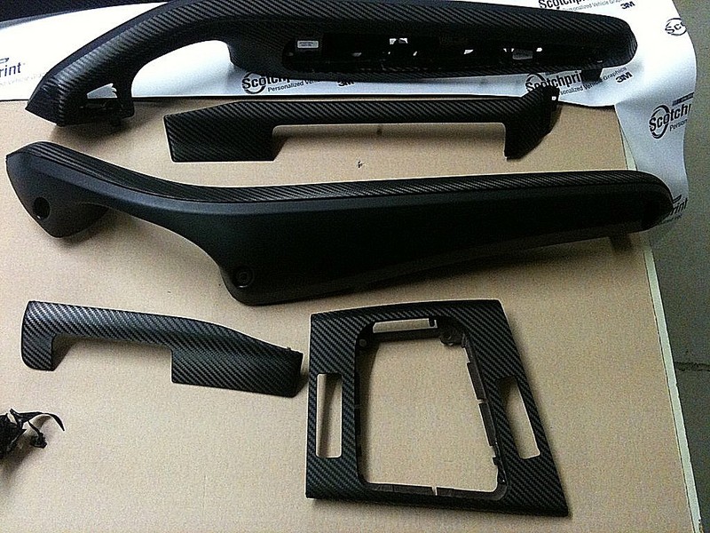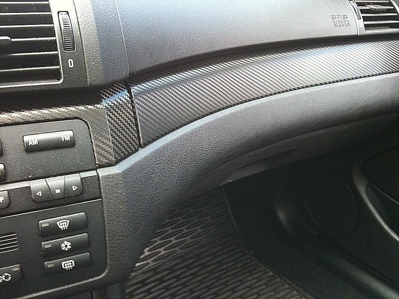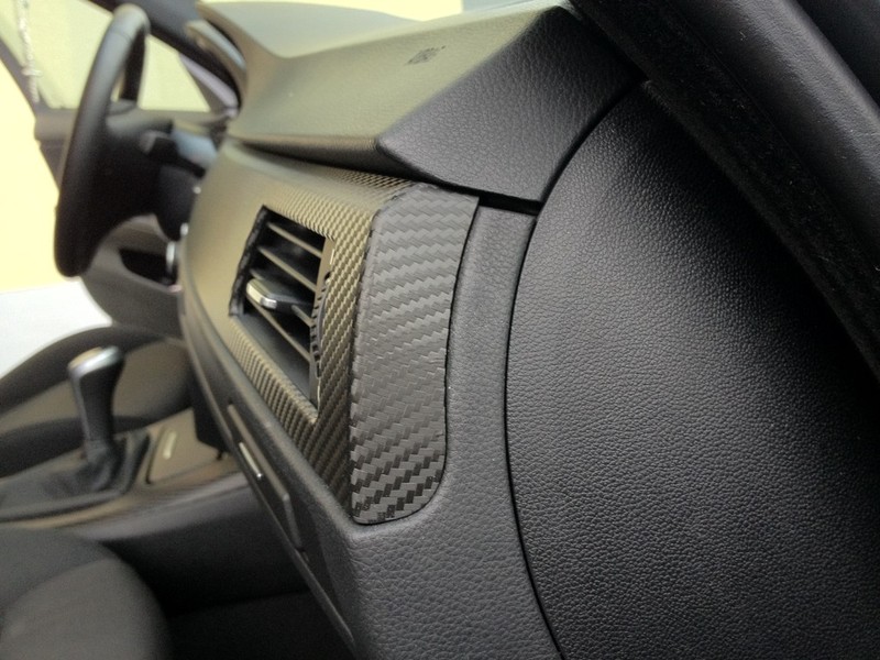 Hier sehen Sie einige Beispielbilder von Interieuleisten z.b BMW-Leisten in carbon schwarz foliert
